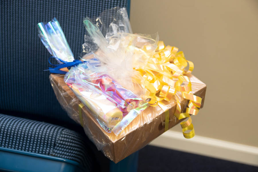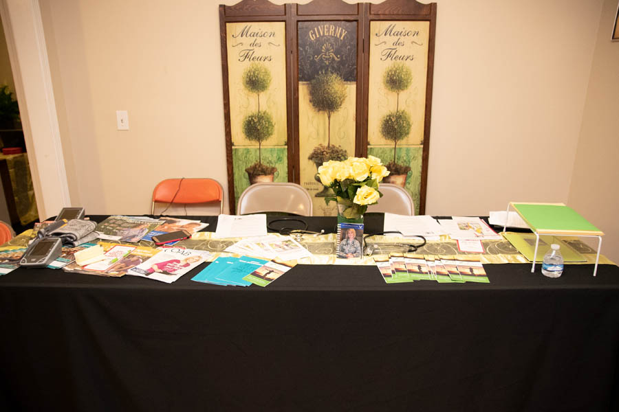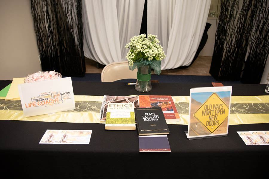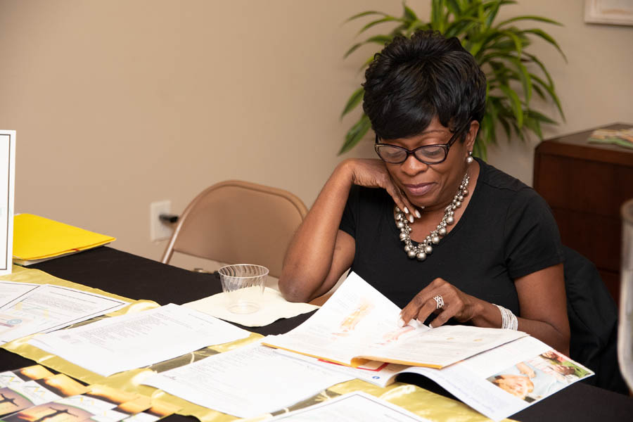 Our Mistress of Ceremonies JoAnn Davis Walker prepares to present gifts through our raffle giveaways from our sponsors.