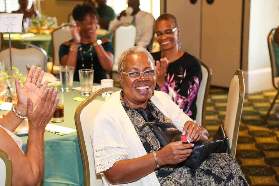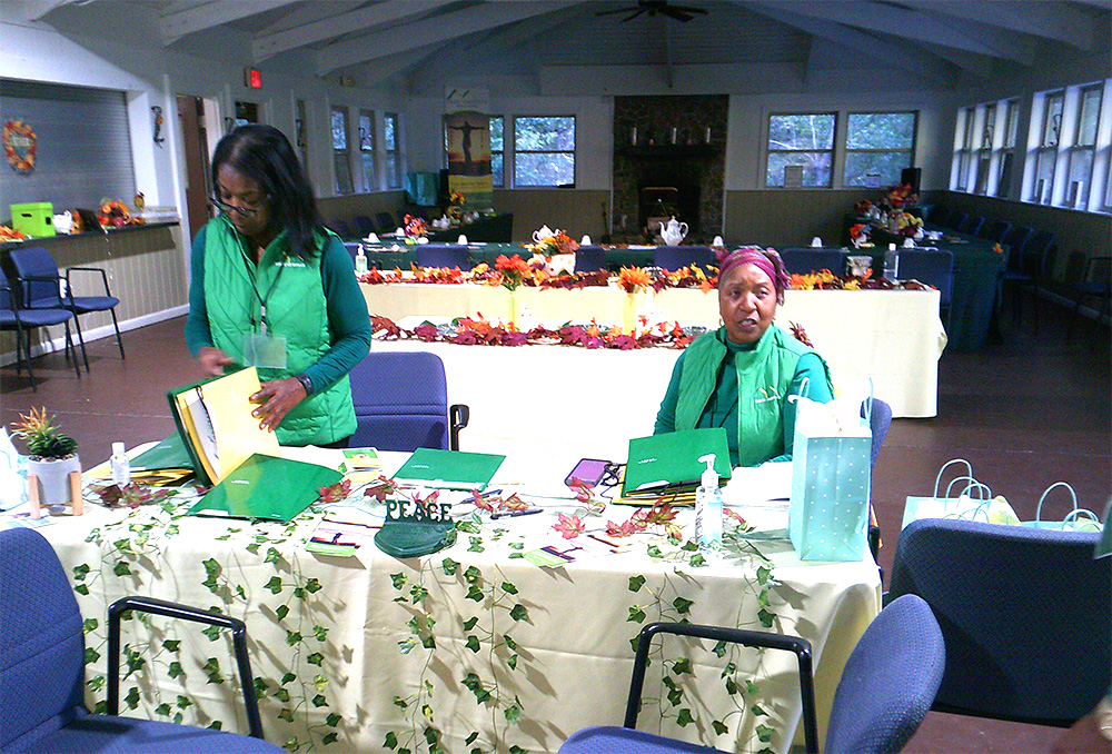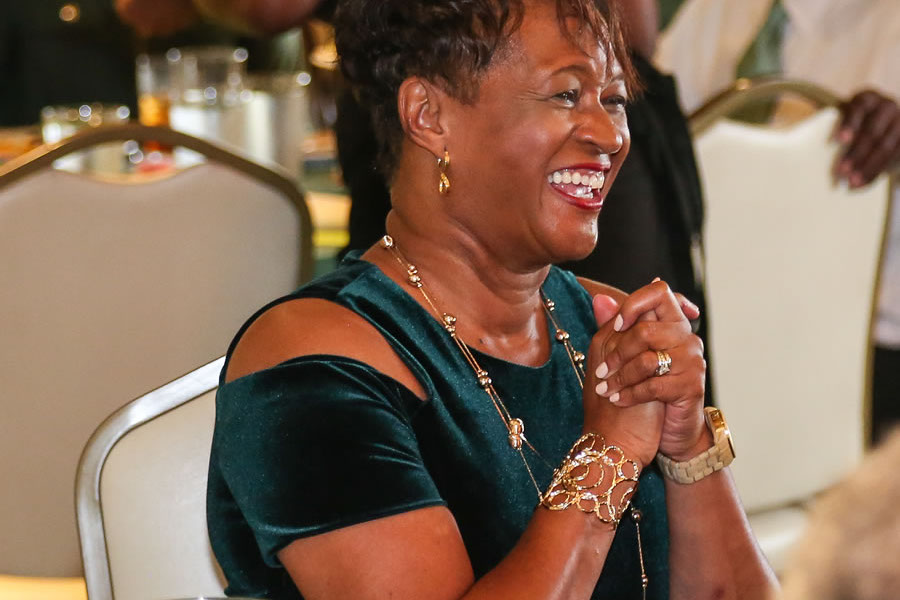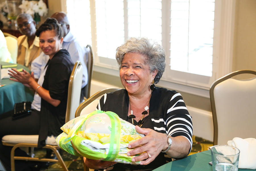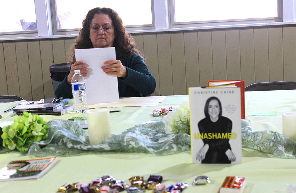 Our Mistress of Ceremonies JoAnn Davis Walker prepares to present gifts through our raffle giveaways from our sponsors.