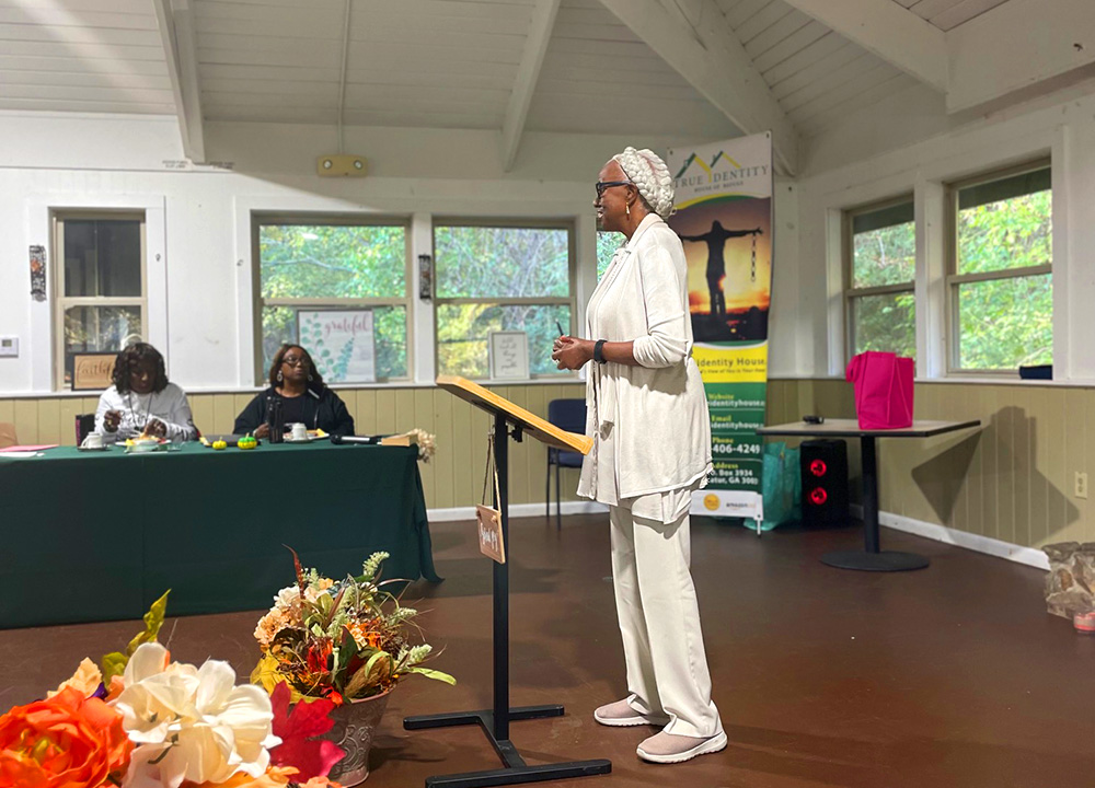 TIHR founder and Director Rene’ Flagg addresses attendees and shares her vision and the purpose of TIHR.